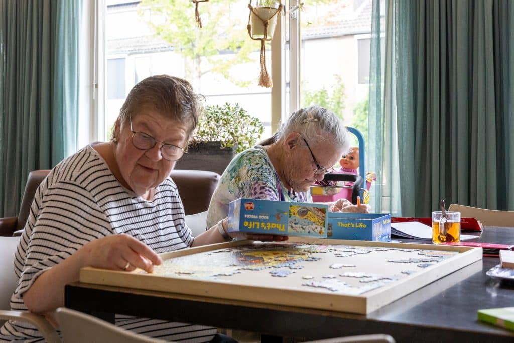 We stimuleren een actieve leefstijl met verschillende leuke activiteiten zoals creatieve ochtenden, muziek maken en beweeglessen. Veel bewoners gaan naar NUdoen!, de Beleefgroep, de bibliotheek, of werken in het groen. Sommige bewoners zijn al wat ouder en kiezen ervoor om thuis activiteiten bij te wonen.