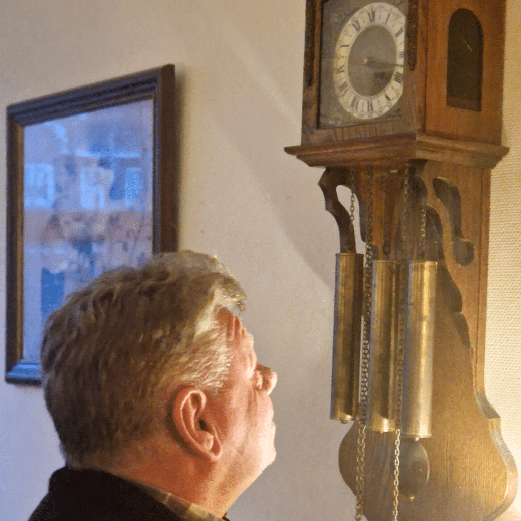 Arie houdt van klassieke spullen. Van dingen met een verhaal. En dat zie je meteen als je bij hem binnenkomt. Sommige klokken zijn van overleden familieleden, andere van zijn ouders. En hij koopt ook klokken zelf. “Het zijn er heel veel”, zegt Arie. “Maar ik heb ze niet geteld.”