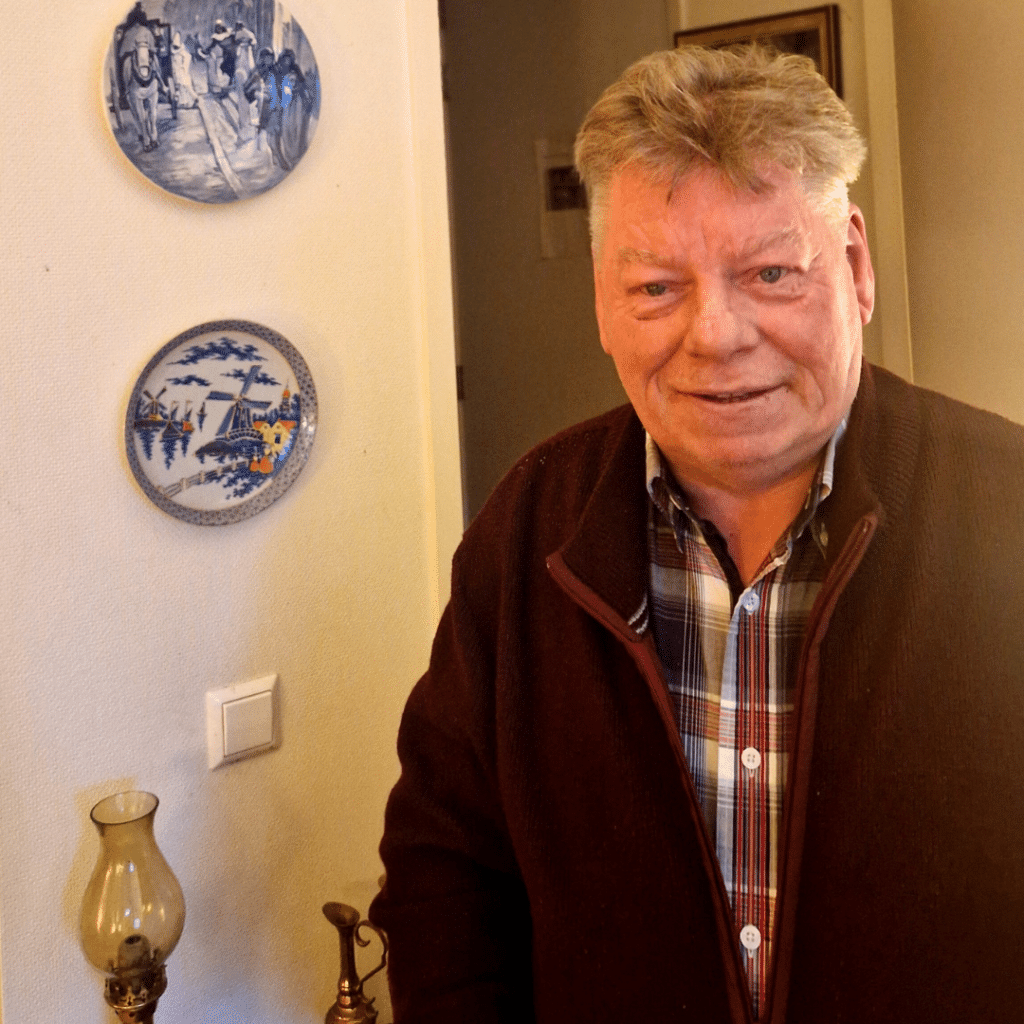 De meest waardevolle dingen in huis zijn voor Arie foto’s. “De foto’s van mijn ouders en van mijn zus zijn heel belangrijk voor mij.” Zijn zus Jolanda is overleden. “Daar kijk ik elke dag naar.” Zijn ouders ziet hij vaak. “Elke week komen ze hier. En om de drie weken ga ik naar hen toe.”