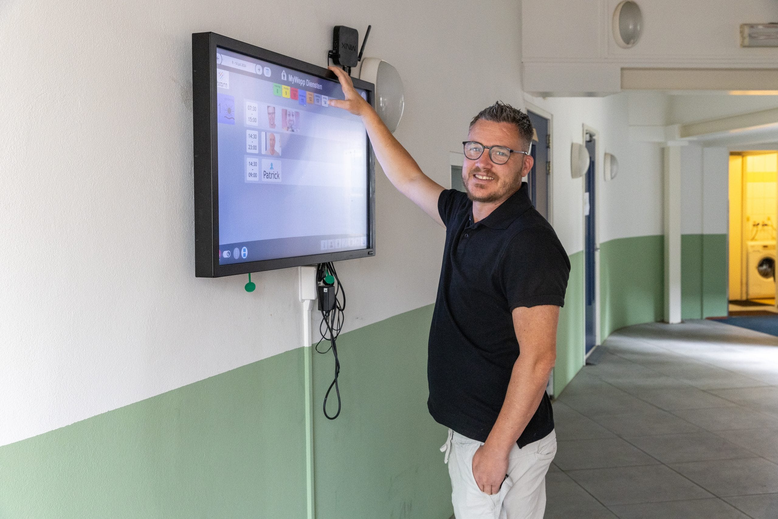 Om de dag te plannen, gebruiken we digiborden. Op deze borden staat informatie die cliënten helpt hun taken zelfstandig te doen. Ook zijn er robots, zoals Tessa en Maatje. Ook de robots helpen cliënten om zelfstandiger te zijn.